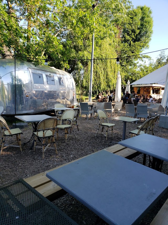 "Guinguette sur les rives du Loing, à l’ombre des arbres. Musique live et restauration (foid market) en plein air. Ligne R depuis Gare de Lyon. "