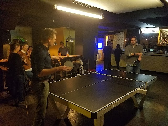 "Bar pour jouer au ping pong, 6 euros la 1/2 heure à booker au bar. Bonne ambiance. Bcp de mecs."