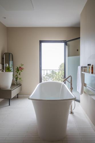 "Hôtel 5 étoiles magnifique ! Séjour d'une nuit dans la suite 115 le 16/05/2022. La chambres est immense, 1 espace salon avec table a manger, canapé, table basse TV et mini bar (offert) et un accès à la première terrasse face à la montagne équipée de table, chaises, et transats. 1 chambre grand lit king size (vue mer depuis le lit) TV accès à la seconde terrasse côté mer avec table a manger chaise et canapé. 1 salle de bain avec grande baignoire (vue sur mer) et douche a l'italienne. Un dressing. WC séparés. restaurant testé en room service pour profiter de la terrasse en manger dans ce cocon. Très bon et goûteux. Belle piscine. seul point négatif proche de la route mais pas trop passante a ce époque."