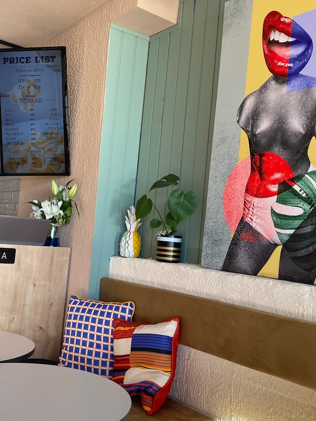 "Restaurante pequeño de pasta. Tardan en servirla pero la hacen al momento. Tienen la pasta parmesano que meten en el queso. Yo pedí esa y Candy la pasta que lleva cebolla caramelizada y carne. Es mejor la de él pq solo con el queso no tiene tanto sabor. estuvo muy bueno. Eso sí, las bebidas son caras. La cerveza son 7 u 8 euros. Pedimos coca cola zero. Aún así, pagamos 12 o 14 euros los dos por cenar. Solo hacen platos de pasta. No hay entrantes. Hay 3 tamaños. Pedimos el mediano y está bien. Suficiente. "